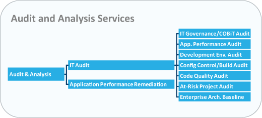 - Code Quality Audit: Organizations often do not set and enforce effective code quality rules across their development assets (Java, J2EE, .NET, XML, Ajax/Javascript, etc.). Over time the complexity of variable and low quality code weighs down an effort and progress becomes increasingly difficult. The audit delivers planning to both remediate the existing code assets and to iteratively establish an environment that enforces quality policies and standards.