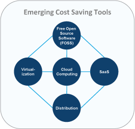 Organizations seeking to reduce overall and fixed costs will find that it is an exciting time in the IT industry. As traditional cost cutting measures continue to yield results, new and dynamic tools (Virtualization, Software as a Service (SaaS), Free Open Source Software (FOSS), Distribution, and Cloud Computing) provide attractive opportunities for cost savings.